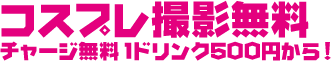 【アコスタ開催日限定】コスプレ撮影無料!チャージ料金無料! 1ドリンク500円〜です。a!カフェ休憩所は特別営業14時~17時まで営業しています。 通常のBAR営業は19時〜23時です。