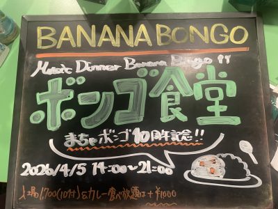4月5日(日) #ボン食 〜まちゃ #バナナボンゴ 10周年〜 本文を読む »