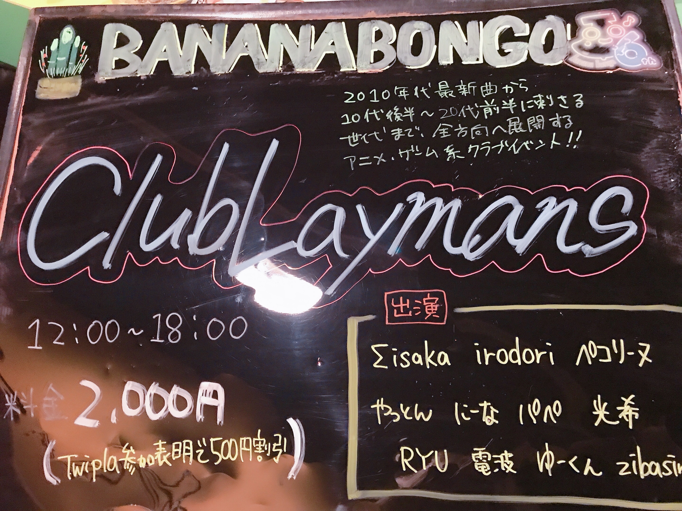 日刊バナナボンゴ1/26(日) #clublaymans #バナナボンゴ 投稿日:2020/01/26 本日は定期クラブイベント「clublaymans」 詳細はこちら→ https://twipla.jp/events/430264 是非遊びに来てくださいね〜♡ このページをシェア ホーム > 日刊バナナボンゴ > 1/26(日) #clublaymans #バナナボンゴ 前の記事 記事の一覧へ 次の記事