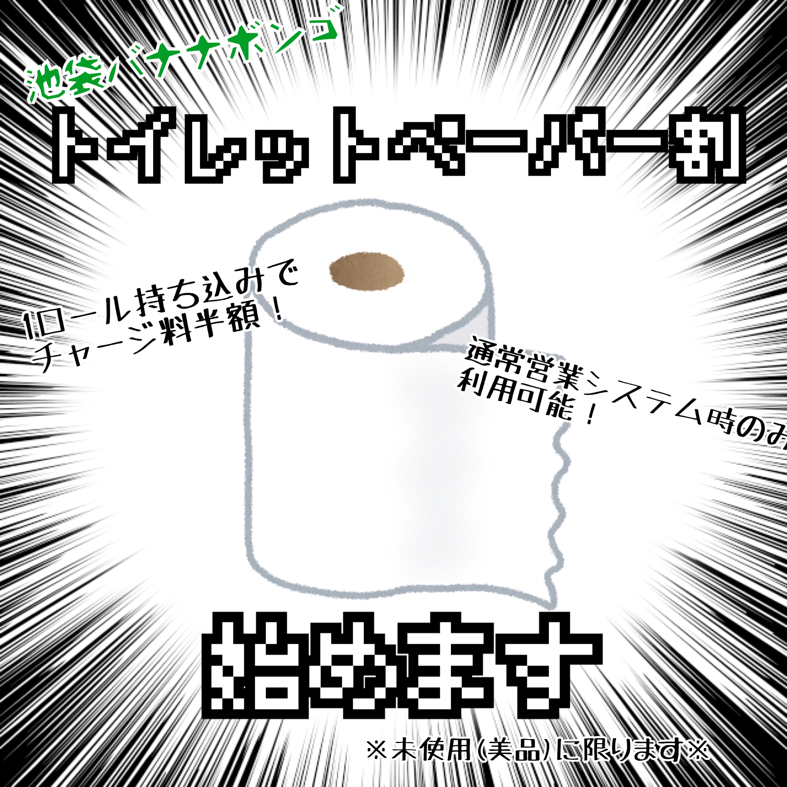 日刊バナナボンゴ3/9(月) ゲームday&トイレットペーパー割 投稿日:2020/03/09 本日のバナナボンゴは ゲームday! &! トイレットペーパー割 最終日! トイレットペーパー1ロール持ち込みで チャージ料半額 ご来店お待ちしております! このページをシェア ホーム > 日刊バナナボンゴ > 3/9(月) ゲームday&トイレットペーパー割 前の記事 記事の一覧へ 次の記事