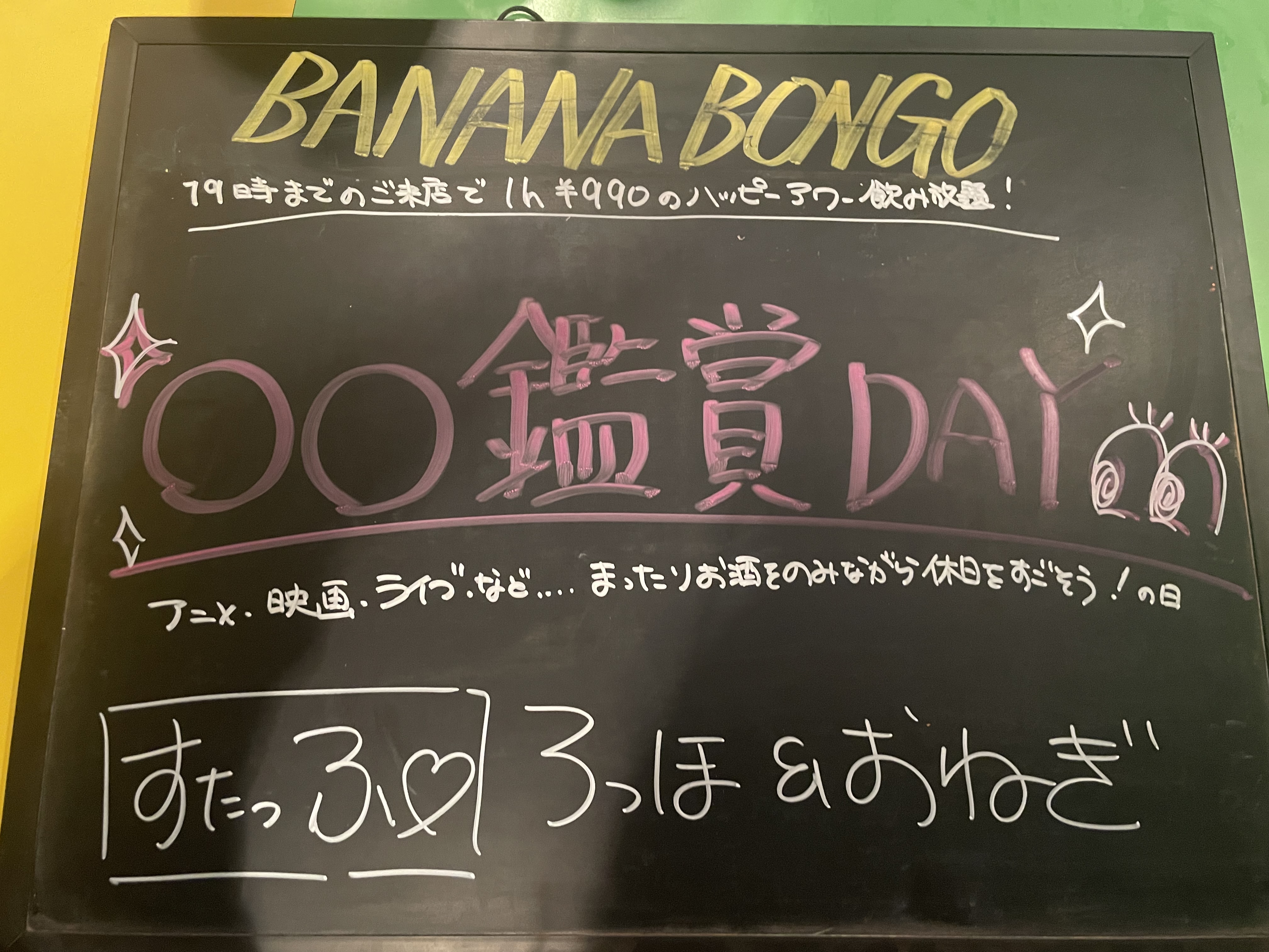 日刊バナナボンゴ6月15日(日) 〇〇鑑賞day #バナナボンゴ 投稿日:2025/06/15 本日は『〇〇鑑賞day』アニメ、映画、ライブ等……まったりお酒を飲みながら上映会をる日になります♫ スタッフはろっほ、おねぎです 皆様のご来店お待ちしております。 このページをシェア ホーム > 日刊バナナボンゴ > 6月15日(日) 〇〇鑑賞day #バナナボンゴ 前の記事 記事の一覧へ 次の記事