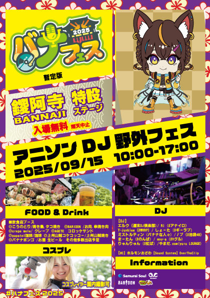 【イベント情報】アニソンDJ野外フェス バナフェス2025 出演者【9/15(月)】フライヤー