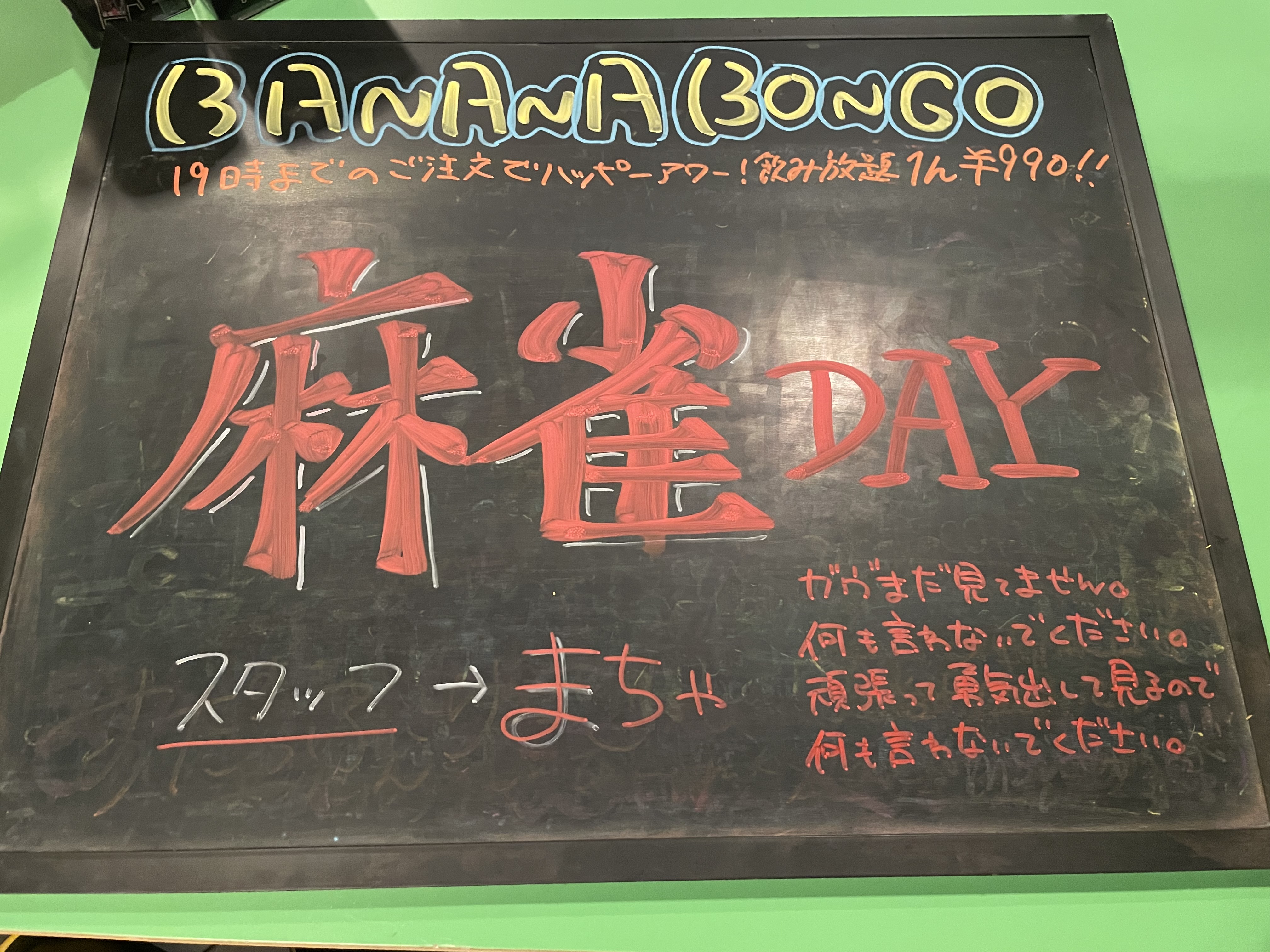 日刊バナナボンゴ8/25(月)麻雀DAY 投稿日:2025/08/25 麻雀DAY! 今月は最終月曜が早いですね! 優勝で景品もありますので奮ってご参加ください! スタッフはまちゃです お待ちしております このページをシェア ホーム > 日刊バナナボンゴ > 8/25(月)麻雀DAY 前の記事 記事の一覧へ 次の記事
