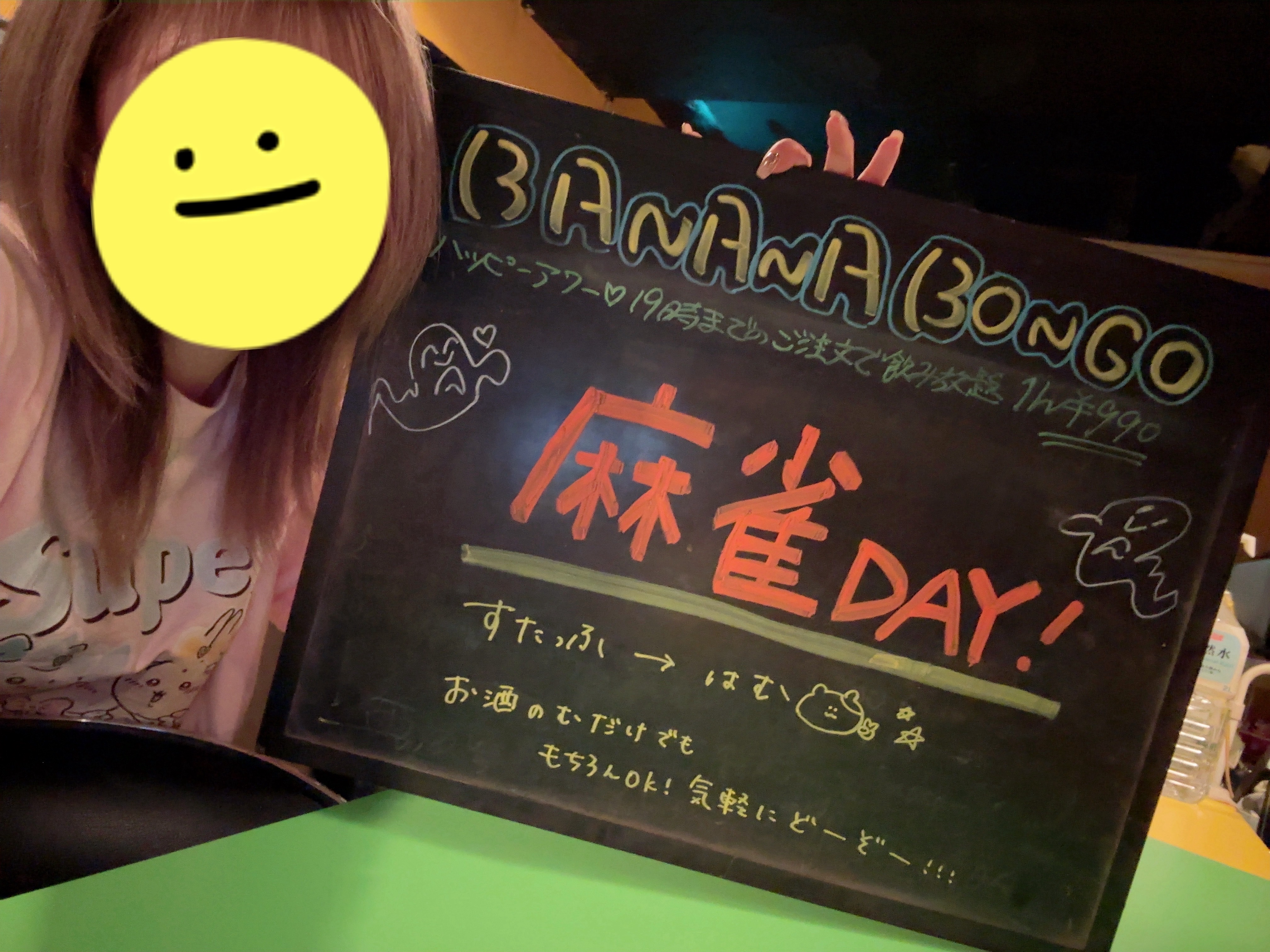 日刊バナナボンゴ10/27(月)麻雀DAY! 投稿日:2025/10/27 本日のバナナボンゴは麻雀デー! 麻雀したい人もお酒飲みたいだけの人も みんな集まれ〜! 出勤スタッフは はむ です。 このページをシェア ホーム > 日刊バナナボンゴ > 10/27(月)麻雀DAY! 前の記事 記事の一覧へ 次の記事