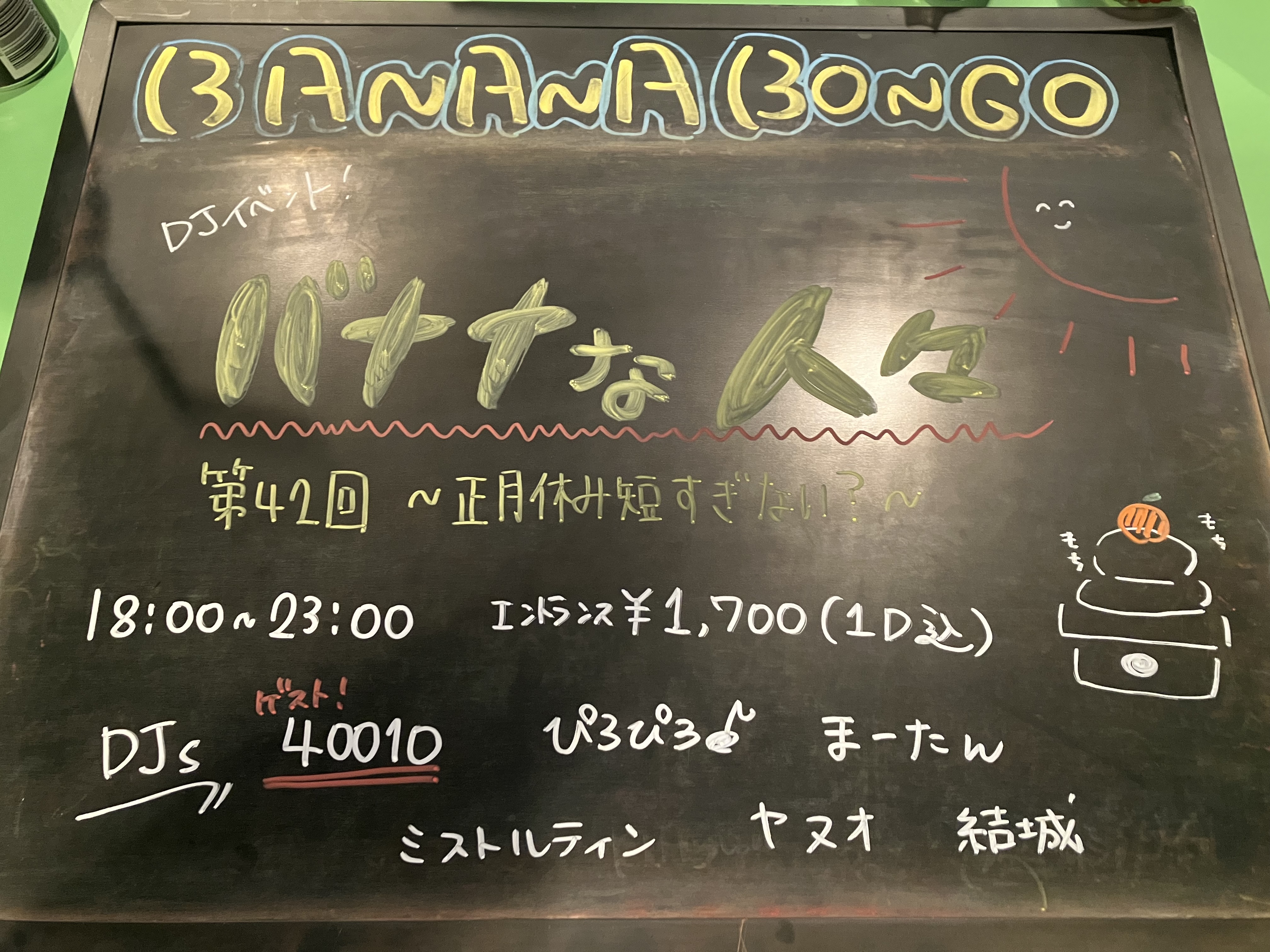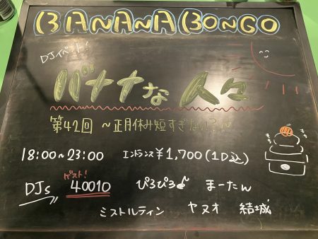 日刊バナナボンゴ1/11(日) #バナナな人々 #バナナボンゴ 投稿日:2026/01/11 本日はDJイベント! バナナな人々! 皆様お待ちしてますよ♪ このページをシェア ホーム > 日刊バナナボンゴ > 1/11(日) #バナナな人々 #バナナボンゴ 前の記事 記事の一覧へ 次の記事