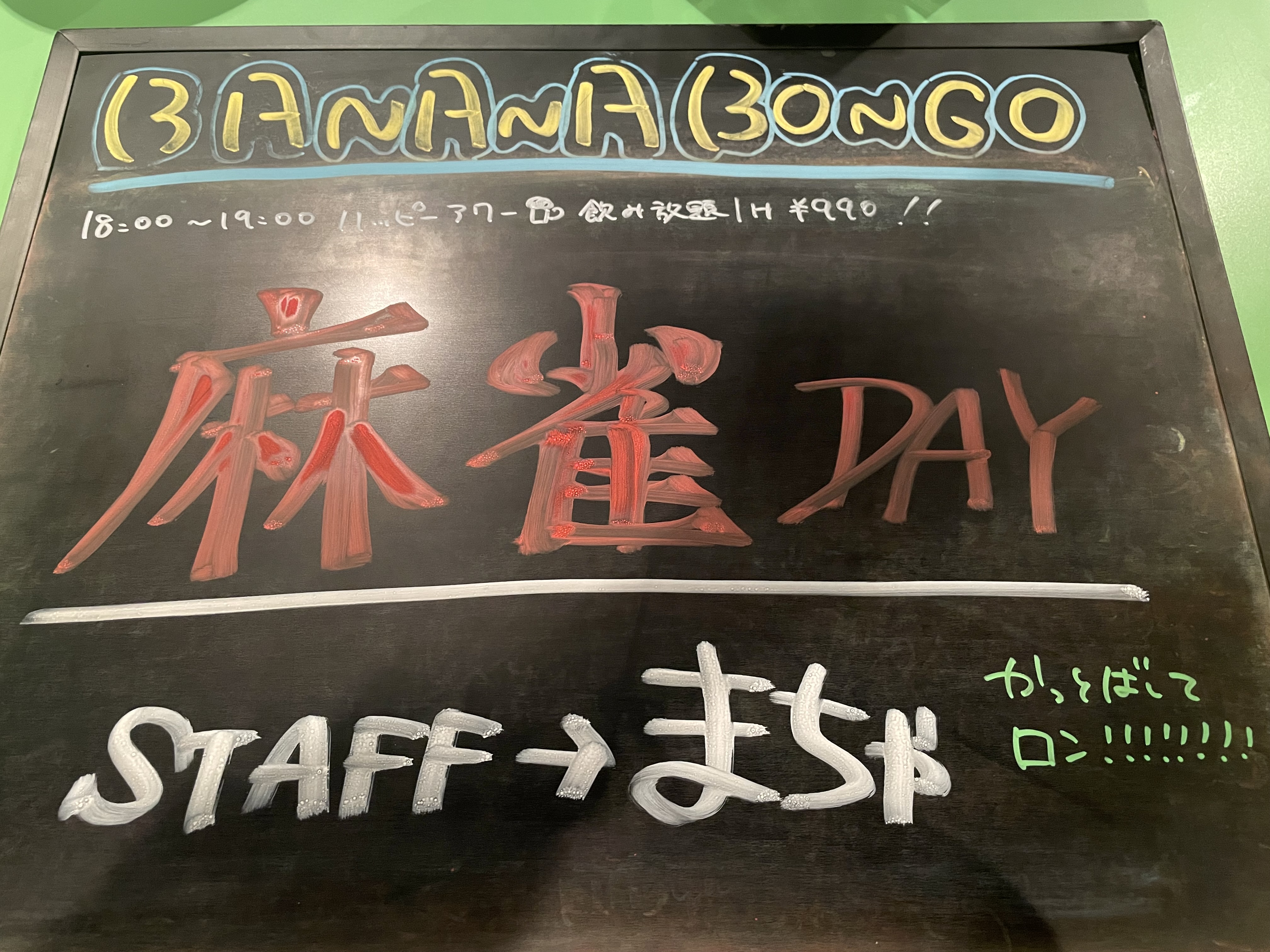 日刊バナナボンゴ1/26(月)麻雀DAY! 投稿日:2026/01/26 本日のバナナボンゴは 月イチ開催!麻雀DAY! 2卓まで組めます! できない人もお酒飲めます! スタッフはまちゃです お待ちしております このページをシェア ホーム > 日刊バナナボンゴ > 1/26(月)麻雀DAY! 前の記事 記事の一覧へ 次の記事