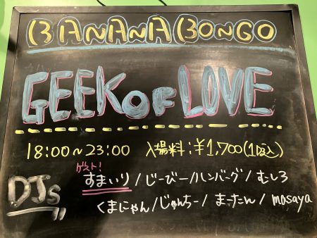 日刊バナナボンゴ2/28 (土) #ギーラブ GEEK OF LOVE #バナナボンゴ 投稿日:2026/02/28 今日はDJイベント! ギーラブ! 皆様お待ちしてますよ♪ このページをシェア ホーム > 日刊バナナボンゴ > 2/28 (土) #ギーラブ GEEK OF LOVE #バナナボンゴ 前の記事 記事の一覧へ