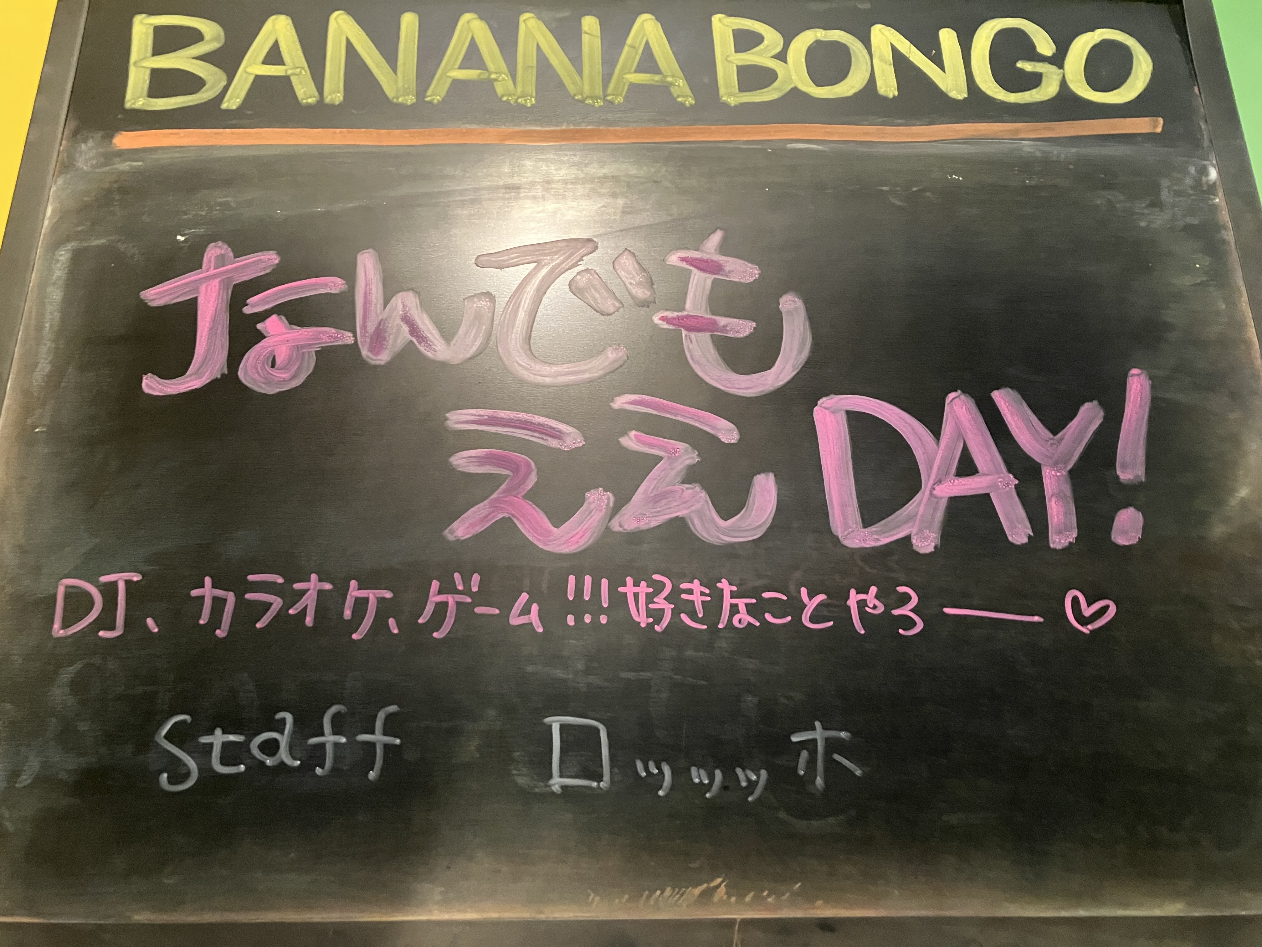 日刊バナナボンゴ4/19 (日) なんでもええday! #バナナボンゴ 投稿日:2026/04/19 本日は通常営業! ゲームもカラオケもDJもなんでもあり! 皆様お待ちしてますよ♪ このページをシェア ホーム > 日刊バナナボンゴ > 4/19 (日) なんでもええday! #バナナボンゴ 前の記事 記事の一覧へ