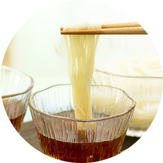 竹製のつゆ入れが、気分もそうめんの美味しさも一層引き立てます。