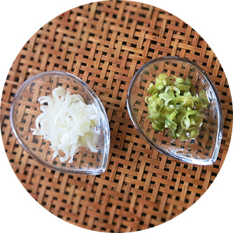 ネギ、みょうが、大葉、生姜に加えて、日替わりの薬味をご用意しています。