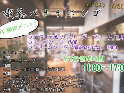 5/5(水) 喫茶バナナボンゴ