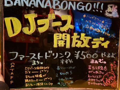 3/20(金)DJブース開放&ファーストドリンクワンコインday