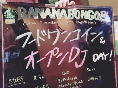 1月11日(土) #バナナボンゴ フードワンコイン&オープンDJday!