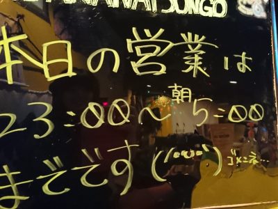 本日の営業は23:00〜です!